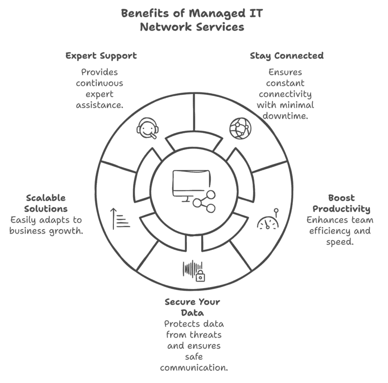 Welcome to our Managed IT Network Services. A business network connects computers, servers, and other devices to facilitate communication and resource sharing.